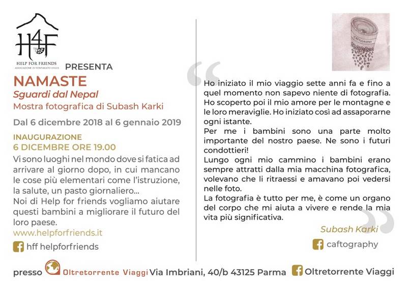 Help for Friends presenta "NAMASTE Sguardi dal Nepal" di Subash Karki.