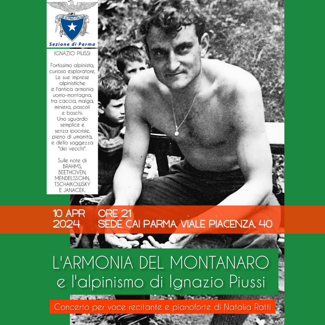 Ritorna a Parma per la terza volta Natalia Ratti con un concerto per pianoforte e voce narrante dedicato al forte alpinista Ignazio Piussi: l'appuntamento è in sede Mercoledì 10 Aprile alle ore 21,00. Breve presentazione nella locandina allegata.