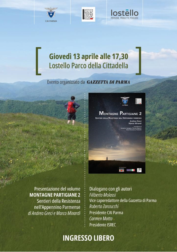 Una guida al cammino per una “conoscenza responsabile” delle nostre montagne, che mette al centro la tutela della memoria e la cura del ricordo di chi, prima di noi, ha amato e frequentato valli e cime per la libertà: il volume verrà presentato da Filiberto Molossi (Gazzetta di Parma), Roberto Zanzucchi e Carmen Motta (Presidente ISREC) Giovedì 13 aprile alle ore 17,30 a Lostello della Cittadella .