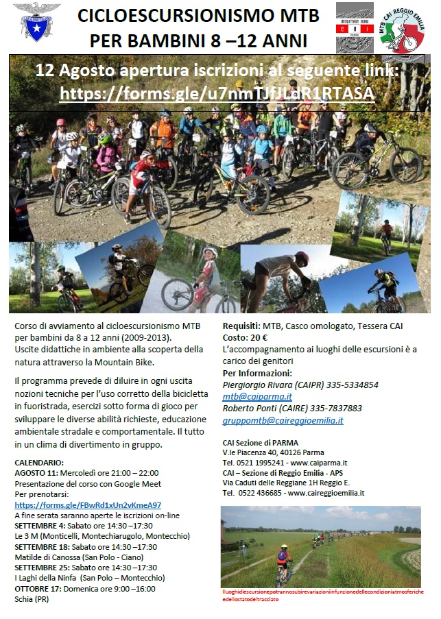 Dopo un anno di pausa tornano le uscite didattiche in MTB per bambini di avviamento al cicloescursionismo. Dal 4 settembre, tutti i dettagli nella locandina allegata