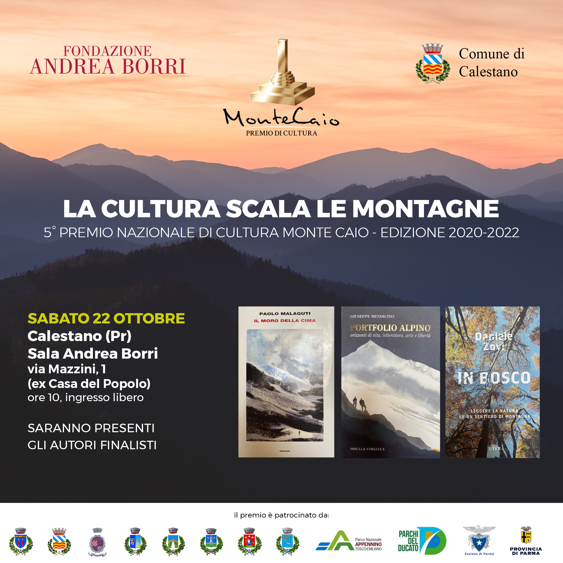 Si svolgerà a Calestano, il prossimo sabato 22 ottobre alle 10,00, la quinta edizione del Premio Monte Caio, promosso dalla Fondazione Borri e sostenuto anche dalla Sezione. Il Premio letterario ha come obiettivo quello di individuare e valorizzare l’opera più significativa nell’esprimere l’ambiente, gli usi, le tradizioni, la storia ed il futuro delle montagne italiane – come si legge nel bando di gara – e meglio rappresentativa del tema dell’edizione, intitolato “La cultura scala le montagne”.
