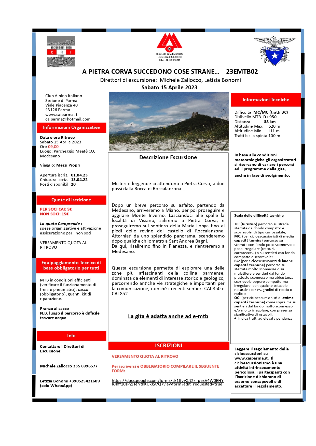 Misteri e leggende ci attendono in questa escursione in mountain bike a Pietra Corva, a due passi dai ruderi della Rocca di Roccalanzona. Questa escursione permette di esplorare una delle zone più affascinanti della collina parmense, dominata da elementi di interesse storico e geologico, percorrendo antiche vie strategiche e importanti per la comunicazione, nonché i recenti sentieri CAI 850 e 852.