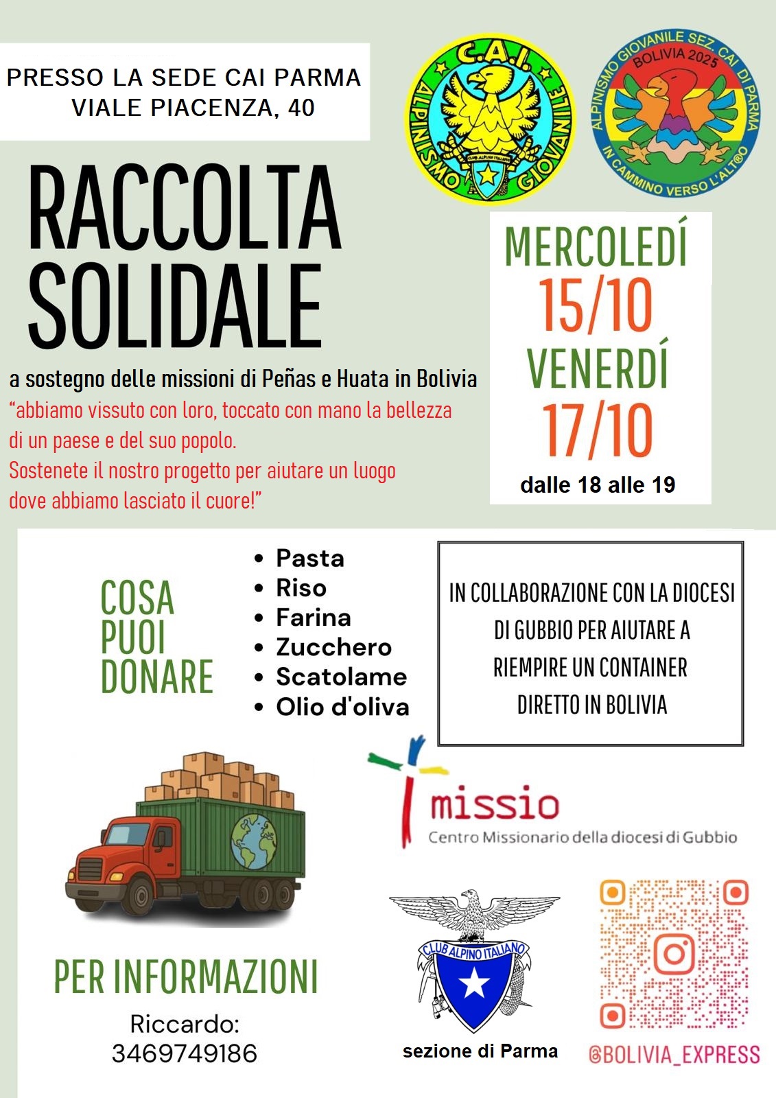 La raccolta si terrà presso la Sede CAI Parma, Viale Piacenza, 40, nei seguenti giorni e orari: