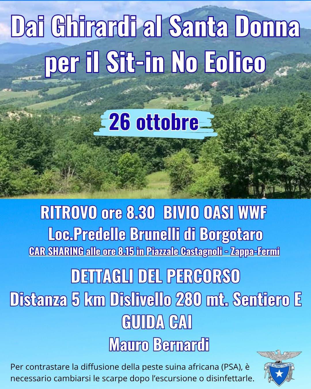 L'iniziativa, intitolata "Dai Ghirardi al Santa Donna per il Sit-in No Eolico", vedrà i partecipanti percorrere un tratto significativo della nostra montagna unendo la passione per la montagna e l'attività escursionistica con l'impegno civico per la difesa del territorio ribadendo l'importanza della conservazione dell'ambiente.