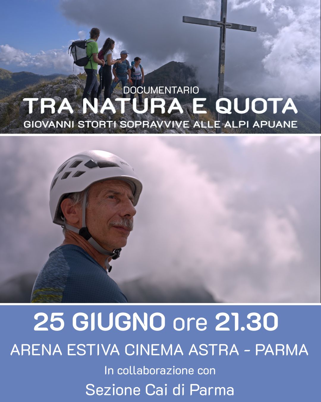 Appuntamento speciale all'Area Estiva del Cinema Astra con il film il nuovo documentario che vede protagonista Giovanni Storti, celebre attore milanese, in un viaggio alla scoperta delle Alpi Apuane. Il film, presentato in anteprima al Film Festival di Trento, scritto e diretto da Giorgia Lorenzato e Manuel Zarpellon e prodotto da Cineblend in collaborazione con il CAI,