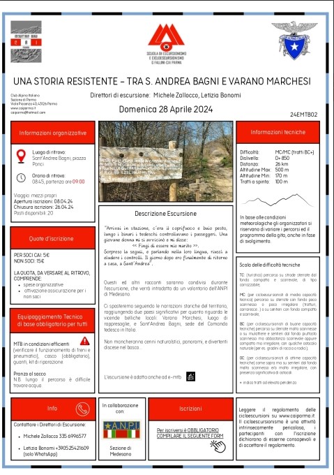 Questi ed altri racconti saranno condivisi durante l'escursione, che verrà introdotta da un volontario dell'ANPI di Medesano.